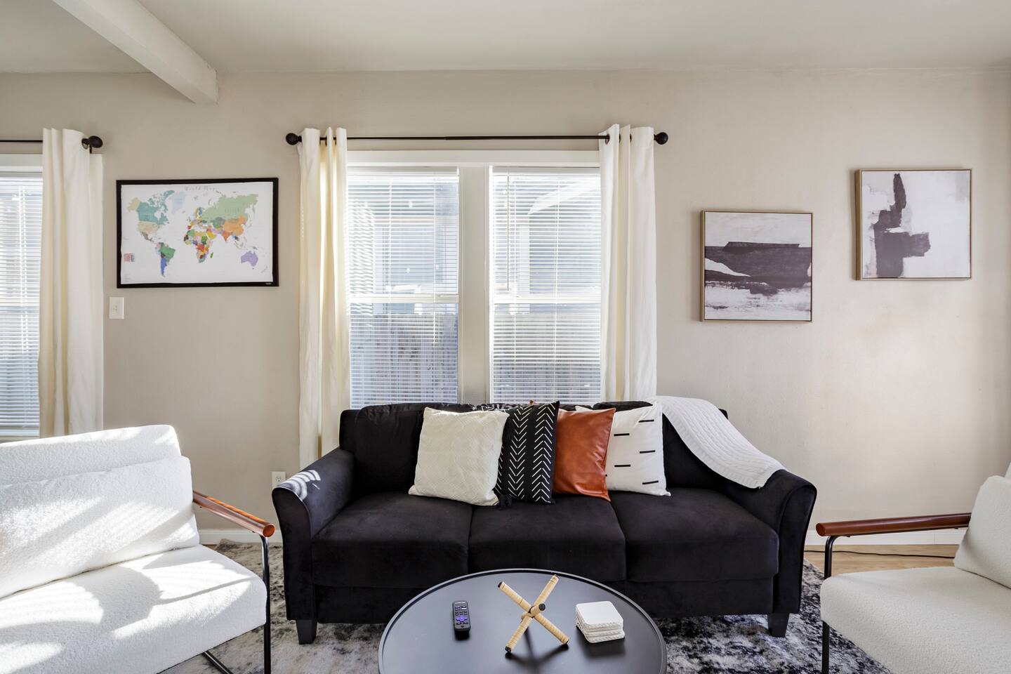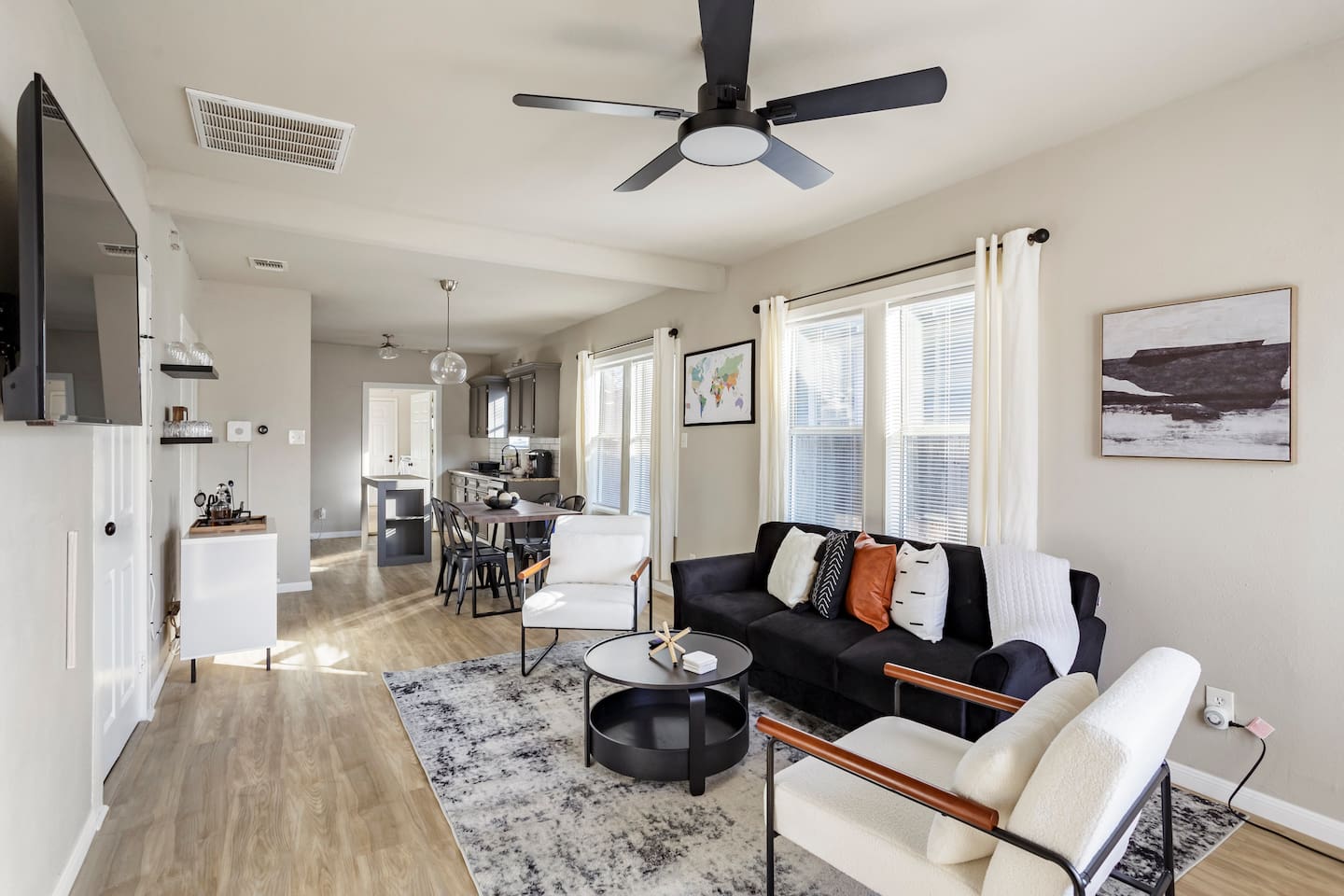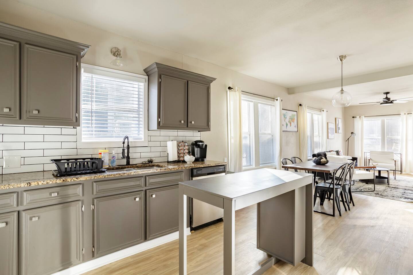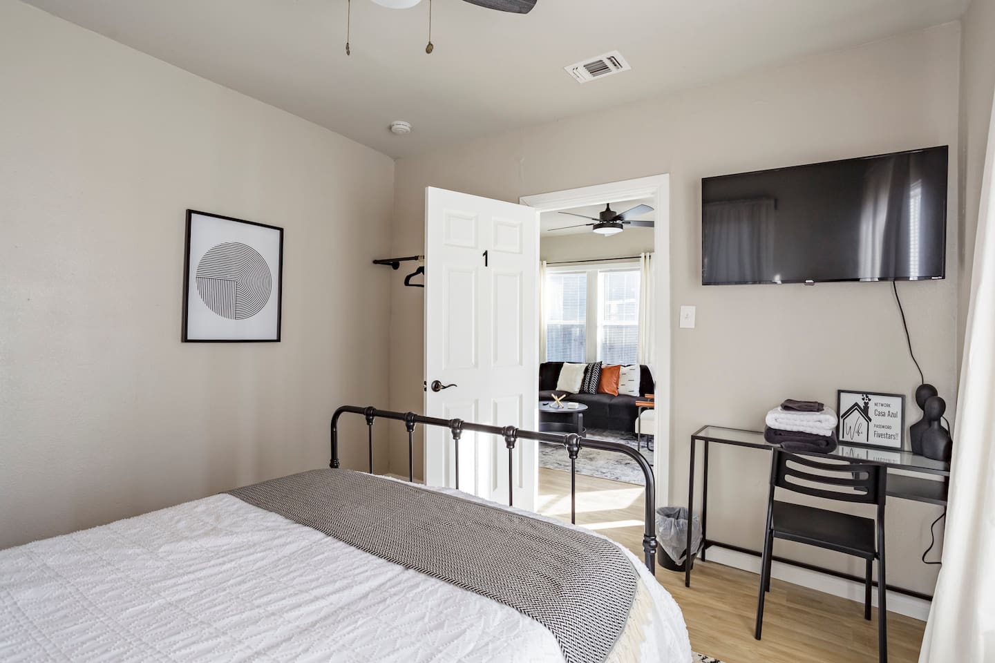 In addition to your private guest room, you’re welcome to enjoy the shared amenities, including a fully equipped kitchen, cozy living room, and guest bathroom. A front-loading washer and dryer are also available for your convenience. The bathroom, shared with one other guest room, is stocked with complimentary soap, shampoo, and conditioner, along with Lysol wipes and cleaning supplies for sanitation. This is a shared home with three Airbnb-rented rooms, offering a comfortable and social stay. Email addresses must be on file to comply with HOA guidelines.